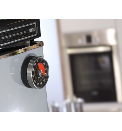 Практичен таймер за всяка кухня. Измерване на времетраенето от 0 и 60 минути. Благодарение на магнитите на гърба лесно може да бъде поставен на всяка метална повърхност.