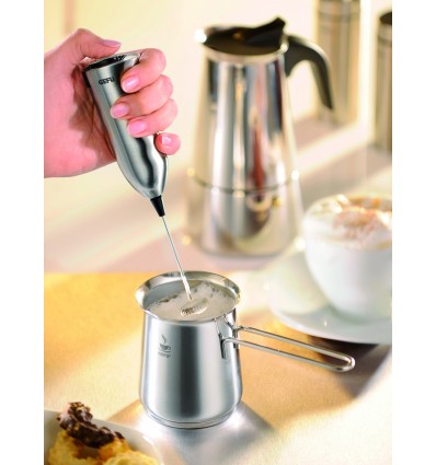 Двойното дъно гарантира поддържането на оптимална температура, а чучурът за изливане улеснява разнасянето на кремообразната пяна в чашата.