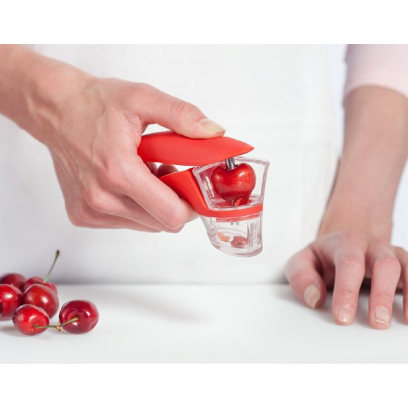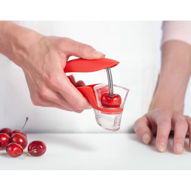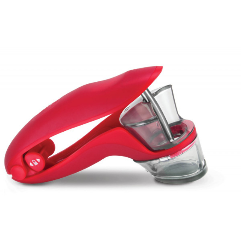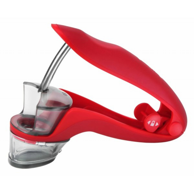 Прибор с високо качество на изработката, снабден със специален контейнер за събиране на костилките.Лесен и удобен за употреба и почистване. Ползване с дясна и лява ръка, уреда притежава заключващ механизъм в затворено положение.