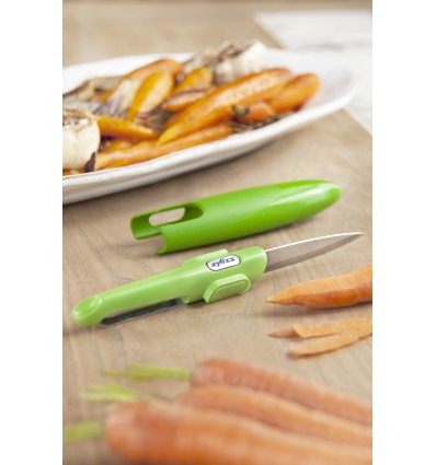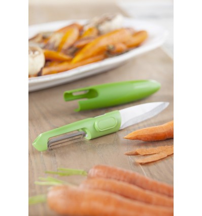 Този универсален инструмент комбинира в себе едновременно белачка и нож.