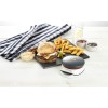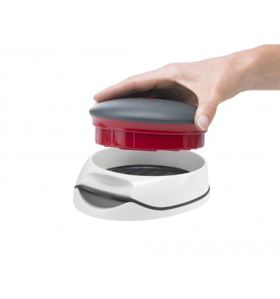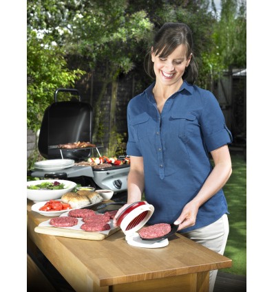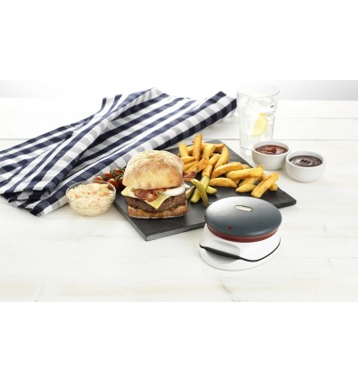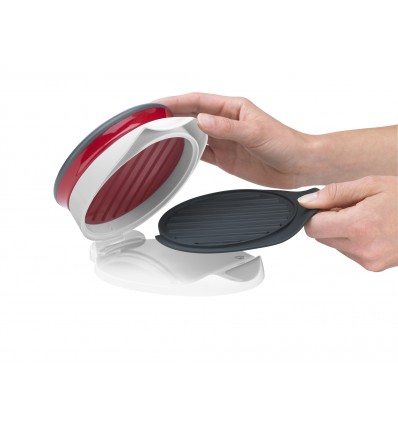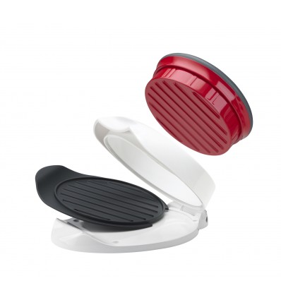 Пресата за бургери разполага с регулируем механизъм, който ви дава възможност да приготвите кюфте с два различни грамажа: 225гр./113гр. след това просто издърпайте подложката и поставете върху тава,грил-тиган или скара. Гумираните крачета придават допълнителна стабилност при работа с пресата.