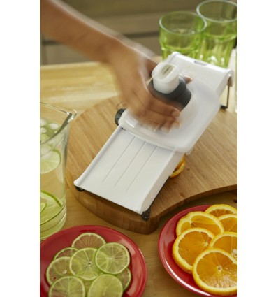 Сгъваемото ренде на Zyliss е създадено за бързо и прецизно рязане на плодове и зеленчуци. Може да се регулира на 5 различни дебелини на рязане.
