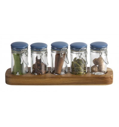Комплект за подправки • Стойка - 1 бр• Бурканчета - 5 бр• Размер: 5 х 8,5 х 4,5 см