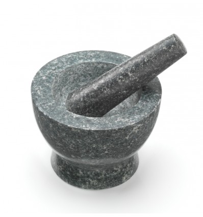 Гранитно хаванче със стилно полирана външна страна, но с по-груба вътрешна повърхност, което го прави подходящо за счукване, както на пресни, така и на сушени подправки и приготвяне на всякакъв вид дресинг.