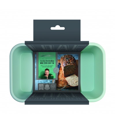 Правоъгълна форма за печене Jamie Oliver• Вертикални гладки стени за перфектен хляб у дома;• Размери: 21 x 13 x 10см• Обем: 1,5л (точно по рецептата на Джейми);• Двойният слой незалепващо покритие гарантира лесно освобождаване всеки път;• Заоблени ръбове за добавена здравина и устойчивост, без огъване • Безвредно незалепващо покритие Quantum II, без съдържание на PFOA;• За температури до 240°С;