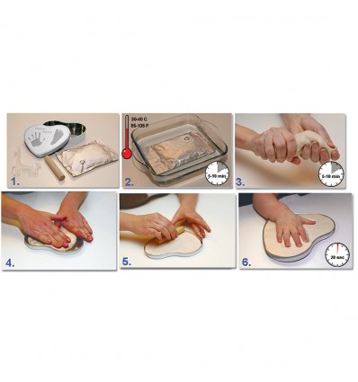 С този комплект можете лесно да създадете траен отпечатък на ръка или краче в двойна дървена рамка. От едната страна ще стои отпечатъка, от другата - снимка. Цялата рамка може да се закачи на стена.