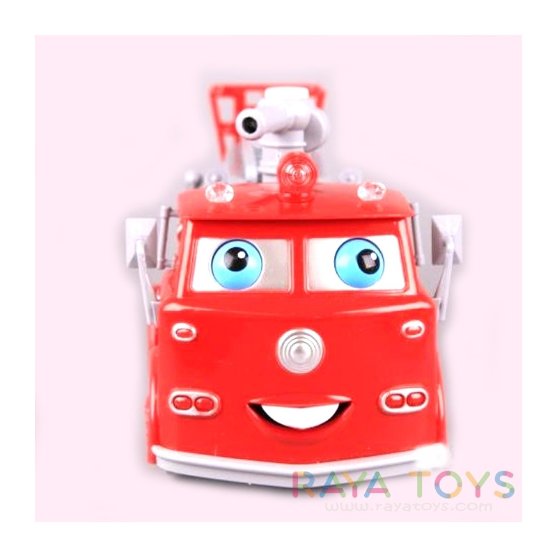 Функции: BUMP&GO /при преграда сменя посоката на движение/;издигане и сваляне на пожарната стълба;подвижни очички и езиче;светещи елементи;реалистични звуци;машина на сапунени мехури.