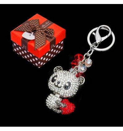 Модерен дамски ключодържател с кристали. Подходящ аксесоар за дамска чанта и раница. Визията се допълва от малко мече, обгърнало червено сърце, инкрустирано с кристали. Ключодържателят е с дължина 13см. Цената включва луксозна подаръчна кутия с размери 8,8см. х 8,8см., височина - 6см. Прекрасен подарък за любим човек.