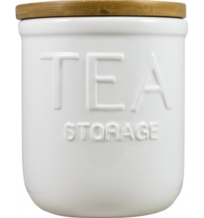 DMD КАНИСТЕР ЗА ЧАЙ OTTO - БЯЛ • Височина: 12 см • Диаметър: Ø 11 см • Материал: Керамика, бамбук • Производител: David Mason Design, Англия<