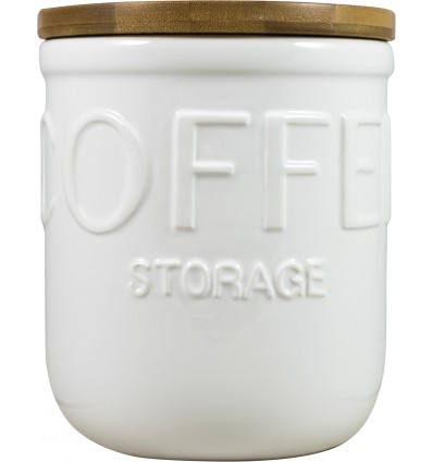 DMD КАНИСТЕР ЗА КАФЕ OTTO - БЯЛ • Височина: 12 см • Диаметър: Ø 11 см • Материал: Керамика, бамбук • Производител: David Mason Design, Англия<