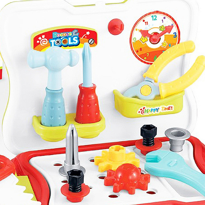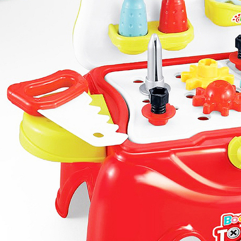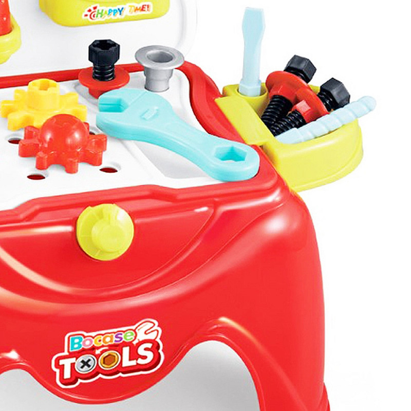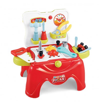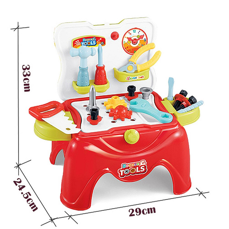 Комплекта съдържа столче с разтварящи се страни и 29 елемента за работа и забавление.