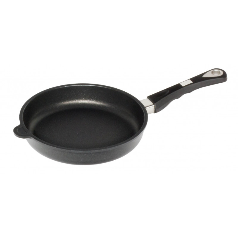 <li><strong>Тиган плитък AMT </strong> <li>Материал: Алуминий <li>Покритие: <strong>Lotan®</strong> <li>Диаметър: 24см <li>Височина: 5см <li>Дебелина на дъното: 9мм <li>Дебелина на стената: 6мм <li>Всички видове котлони с изключение на индукция <li>Дръжки: Бакелит - издържат до 240°С <li>Производител AMT Germany