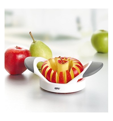 GEFU Резачка за домати и ябълки - РARTI• Материал: неръждаема стомана 18/10, пластмаса• Диаметър: Ø 10,5 см• Височина: 6 см• Разрязване на 16 парченца • Едновременно нарязва ябълки или круши в 16 апетитни резена,а също  премахва сърцевината.• Подходяща за съдомиялна машинаПроизводител: GEFU / Германия