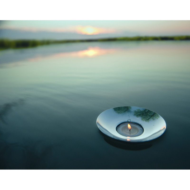 Свещник, изработен от висок клас неръждаема стомана, с тегло само 35 грама. SHELL  е толкова лек, че може да плава на повърхността на водата.
