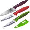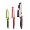 Комплектът от 3 ножа на Zyliss съдържа в себе си трите най-употребявани ножа в кухнята. С него можете да обработвате продукти като плодове, ядки, месо, сирена и зеленчуци за ежедневно хранене, бързи обяди и вкусни десерти. 9 – сантиметровият нож за плодове и зеленчуци, 10 – сантиметровият серетиран нож и 14 – сантиметровият универсален нож се предлагат с протектори, които са в тон с гумираните дръжки и предпазват остриетата при съхранение.