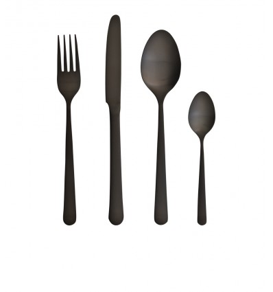 HERDMAR Комплект прибори за хранене "CHEESE“ за 6 човека от 24 части с черно PVD покритие• Изработени от неръждаема стомана 18/10 • Подходящи за почистване в съдомиялна машина. • С черно PVD покритиеКомплектът включва• Нож за хранене: 6 бр.• Вилица за хранене: 6 бр.• Лъжица за хранене: 6 бр.• Лъжичка за чай: 6 бр.Производител: HERDMAR / Португалия