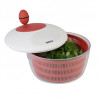 Измийте салатата, поставете я в съда и затворете капака плътно. Започнете да въртите дръжката. Благодарение на плавния механизъм, салатата се изсушава лесно. Пластмасовата цедка може да се използва като гевгир. Съдът е изработен от пластмаса, подходящ за съдомиялна машина.