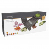 Само за 5 минути мусаката е в печката, за 2 минути тараторът е готов! За нула време подготвяте картофите за мусака, нарязвате зелевата салата, чушки и домати за миш-маш, 5 кг. картофи за чипс или на пръчици, фино нарязани лук и моркови за супи. Нарязвате дори луканки, салами или сирене. Празничната трапеза е готова, а Вие имате повече време за себе си!