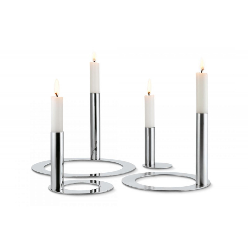 Свещник RONDA ще Ви впечатли с дизайн и естетика. Четирите пръстена могат да бъдат заедно или поотделно. Два от пръстените са матови, а другите полирани. Това придава на този квартет оригиналност и изтънченост.