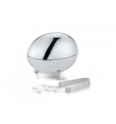 JACKIE е с форма на яйце, поставено върху три крачета. Изработен от огледално полиран никел. С помоща на щипките лесно ще дозирате сладостта на вашето кафе или чай. JACKIE със сигурност ще е акцент  на всяка маса със своя оригинален дизайн .