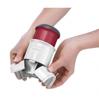 • Материал: Неръждаема стомана, PP, SAN, ABS, TPE, POM• Въртящо се острие• Контейнер с капак• Подходяща за съдомиялна машина Производител: Zyliss / Швейцария