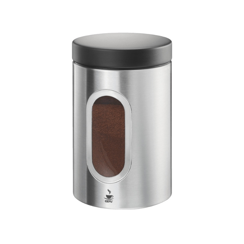 GEFU Кутия за кафе, 500гр• Вместимост: 500 гр• Материал: неръждаема стомана, пластмаса, алуминий• Размери: Ø 11 х 17 см (h)• Затваряне с щракване• Херметично затваряне на капака• Запазва ароматите на кафетоПроизводител: GEFU / Германия
