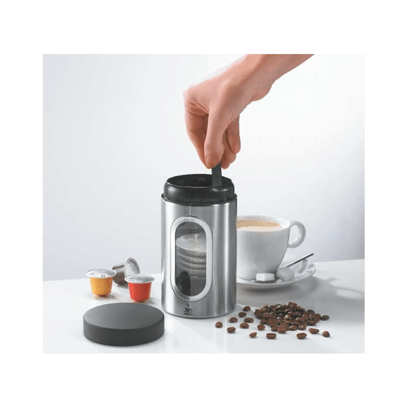 Идеална за съхранение на кафе на зърна, капсули за кафе машина и други свързани продукти свързани с кафето.