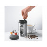 Капака се затваря чрез щракване и уплътнява добре, като запазва аромата и свежестта на кафето.