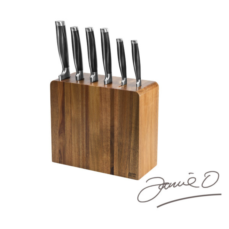 JAMIE OLIVER Комплект от 6 броя ножове в блок от акация