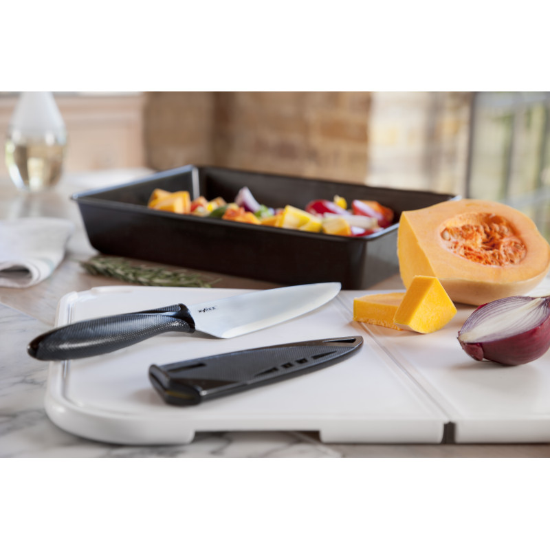 Ножът на майстора от неръждаема стомана на Zyliss е перфектното средство за ежедневно нарязване и белене на зеленчуци, месо, билки и подправки, плодове и др. Освен, че е чудесен функционален нож за приготвяне на храна, той е и стилна добавка към Вашия набор от инструменти за готвене. Предлага се с протектор, който е в тон с гумираната дръжка и предпазва острието по време на съхранение.