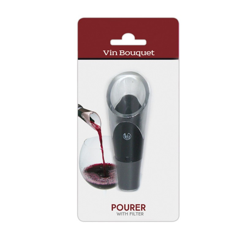 Накрайникът за наливане е един от необходимите аксесоари.Поставя се директно в гърлото на бутилката с вино, което прави процеса на разливане по чашите много по-лесен и чист. А филтърът отделя утайката (за някои вина) от питието, годно за консумация.