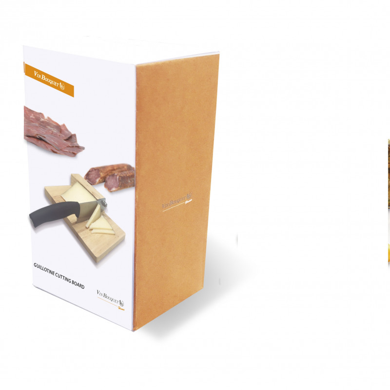 Дъска за рязане с гилотина на Vin Bouquet. Дъската е оразмерена за рязане на фини и напълно еднакви парчета. Ножът се разглобява за лесно почистване и заточване. Сега вече можете спокойно да организирате перфектното парти, да поканите смело гости на вечеря или да зарадвате близките си с красиво оформени ястия.