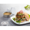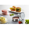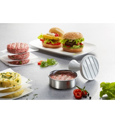 Приготвянето на хамбургери никога не е било по-лесно! Поставете желаното количество мляно месо или друга смес в съда от неръждаема стомана и оформете идеалния бургер с помощта на порцелановото бутало. Вземете бургера и го запържете или изпечете. Благодарение на вдлъбната част в средата на съда от неръждаема стомана, бургерът запазва формата си. Просто, бързо, вкусно! За кюфте с размер 60гр, диаметър: 7,8см. Материал: неръждаема стомана 18/10, порцелан. Подходящи за съдомиялна машина.
