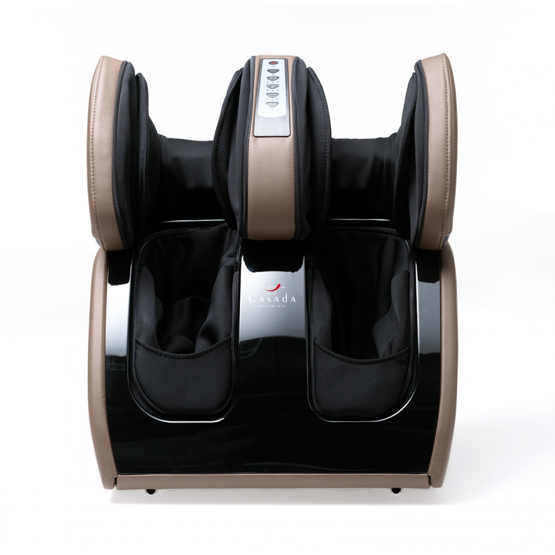 CANOO V e масажор, който ще направи чудеса с Вашите подути и уморени стъпала, колена и бедра. Благодарение на 44 -те масажни ролки при стъпалата и 30-те въздушни възглавници, CANOO 5 ще подобри циркулацията на кръвта, ще укрепи мускулите и ще възстанови бързо Вашите крака. В допълнение със загряващата фунция, CANOO V ще Ви подсигури пълен релакс и ще даде на краката Ви топло усещане за комфорт. Горната част на масажора е подвижна ( до 110 градуса наклон) , така можете да масажирате коленете и бедрата си.