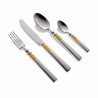 Комплект прибори за хранене Herdmar "1911" за 6 човека от 24 части с позлатен елемент  • Изработени от неръждаема стомана 18/10• Подходящи за почистване в съдомиялна машина. • Елемент от дръжката е позлатен с 24 каратово злато (със сертификат )  Комплектът включва: • Нож за хранене: 6 бр. • Вилица за хранене: 6 бр. • Лъжица за хранене: 6 бр. • Десертна лъжичка: 6 бр. ПРОИЗВОДИТЕЛ: HERDMAR / Португалия