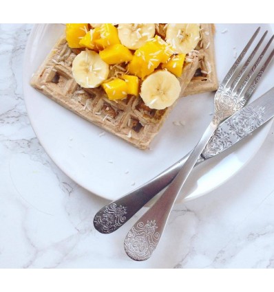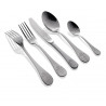 Комплект прибори за хранене Herdmar "POMPADOUR" за 6 човека от 24 части. Изработени от неръждаема стомана и подходящи за почистване в съдомиялна машина. Комплектът включва: • Нож за хранене: 6 бр. • Вилица за хранене: 6 бр. • Лъжица за хранене: 6 бр. • Десертна лъжичка: 6 бр. ПРОИЗВОДИТЕЛ: HERDMAR / Португалия