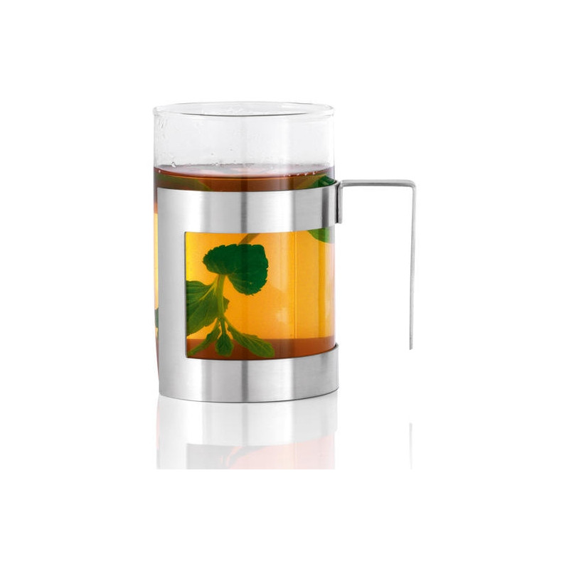 BLOMUS Чаша за чай DARJEE • Височина: 10 см • Диаметър: Ø 7 см • Вместимост: 200 мл • Материал: матирана неръждаема стомана, стъкло • Производител: BLOMUS, Германия