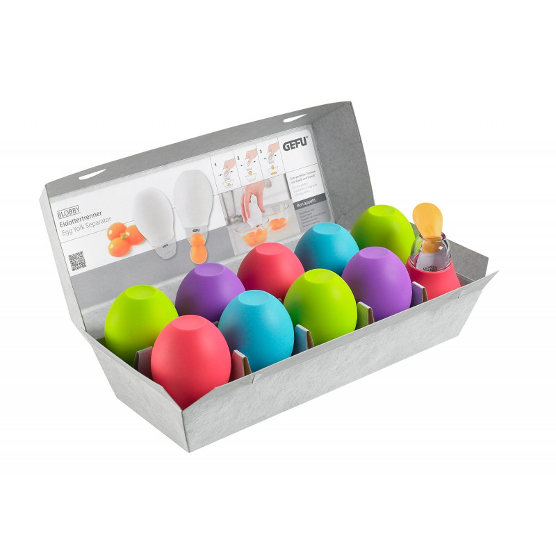 GEFU Сепаратор за яйца BLOBBY• Иновативен и интелигентен сепаратор за лесно разделяне на белтъци и жълтъци!• Изработен от силикон и пластмаса, подходящ за съдомиялна машина. • Цвят: лилавПроизводител: GEFU / Германия