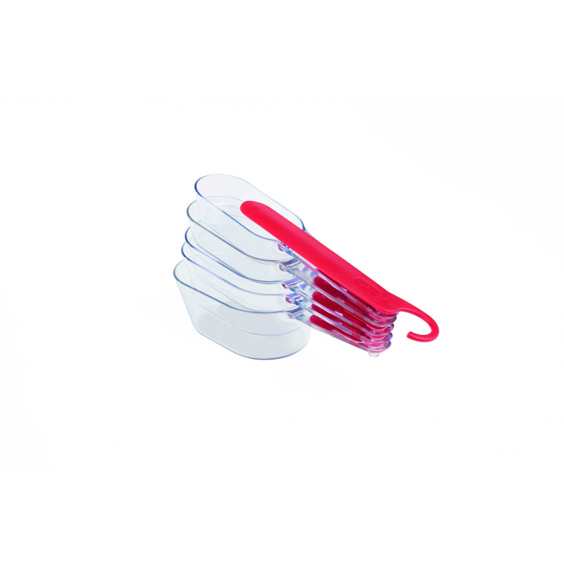 ZYLISS Мерителни чашки - 5 бр • Чашка 1:   ¼ чаша( 62 мл) • Чашка 2:    ¹⁄3 чаша ( 83 мл) • Чашка 3:    ½ чаша ( 125 мл) • Чашка 4:    ¾ чаша ( 187 мл) • Чашка 5:   1 чаша ( 250 мл) Бързо и лесно измерване Компактни за съхранениеШпатулка за заравняване и прецизно дозиране Подходящи за съдомиялна машина
