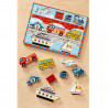 По асфалт, на релси, по море или въздух - детското въбражение ще се разходи наблизо и далеч с частите на този дървен пъзел. Той има 9 части. Детето трябва да забележи къде е рисунката на съответното превозно средство и там да сложи дървената фигурка. Всяка от тях може да стои изправена и са подходящи за въображаеми игри сами по себе си. Запознавайте детето с всяко превозно средство - с името, звуците, къде ходи, как превозва хората и др. Можете да броите фигурките, да събирате и изваждате до 9. Заниманията с комплекта развиват координацията око-ръка, фината моторика на ръцете и креативността.