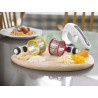 Големият контейнер побира повече продукти, което позволява по-бързото им настъргване. Барабаните се обръщат за работа с лявата или с дясната ръка, а разглобяването е бързо и удобно за лесно почистване.