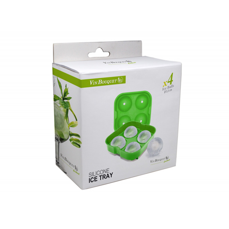 Vin Bouquet Силиконова форма за 4 бр. ледени топчета• Размери на опаковката: 14 x 16,5 x 6 см.• Тегло: 0,140 кг.• Материал: Силикон, ABS пластмасаПроизводител: Vin Bouquet, Испания