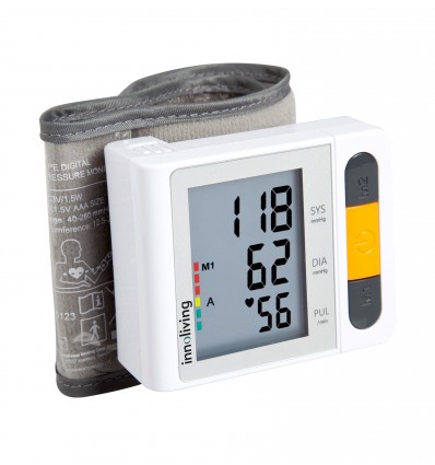 Технически данни:Размери: 70х60х30 ммТегло: 110 гр.Метод на измерване: Осцилометричен Обхват на измерване: от 40 до 260 mmHg (за кръвно налягане)    от 40 до 160 удара (за пулс)Инфлация (надуване): Непрекъснато. контролирано от електрическа помпаИзпускане на  въздуха: Автоматичен клапан за отпускане на наляганетоЗахранване: 2 х ААА батерии, включениПамет: по 90 измервания за двама потребителиРазмер на маншета: 22 ~ 32 см.Съдържание: Основно тяло; маншет за китка; 2 х ААА батерии; кутия, инструкции за употреба. Производител: INNOLIVING - Италия