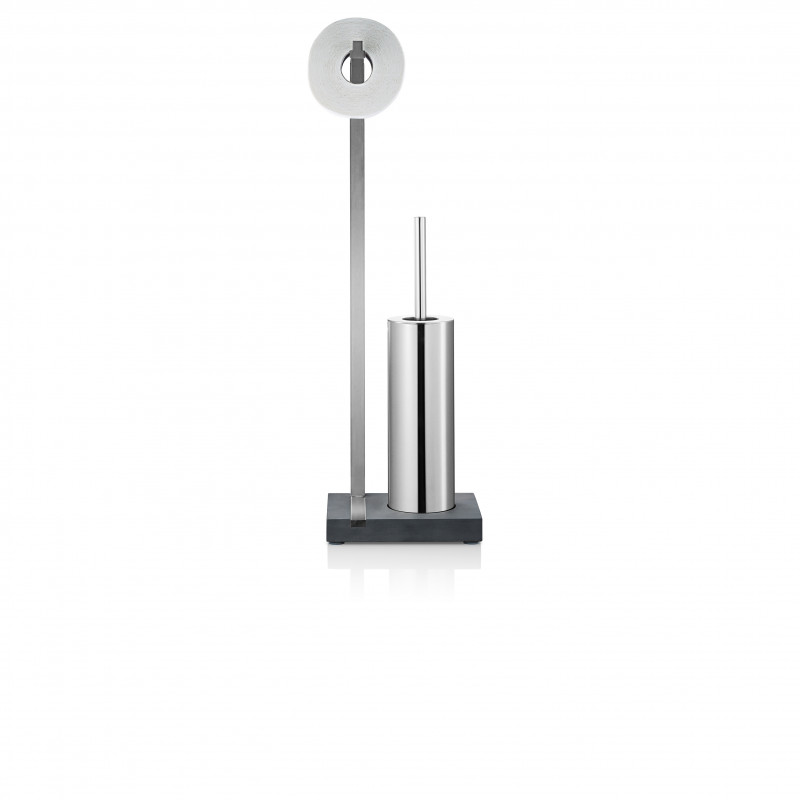 BLOMUS Комплект стойка за тоалетна хартия и четка за тоалетна MENOTO - матирана • Височина: 64,5 см • Размер: 15 х 20 см • Материал: матирана неръждаема стомана, пластмаса, основа - черен технически камък • Производител: BLOMUS, Германия DESIGN: Flöz Design