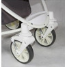 Почиставайте тапицерията повърхностно с топла вода и мек препарат. Не използвайте белина. Не сушете на директна слънчева светлина. Пластмасовите детайли почиствайте с кърпа, вода и мек препарат. Металните части почиствайте с влажна кърпа и изсушете добре със суха кърпа. При експлоатация върху запрашен или кален терен, ходовата част трябва да се почисти и смаже, за по-комфортно движение. Периодично смазвайте с масло болтовете и осите на колелата. Когато количката е на съхранение, никога не поставяйте други предмети върху нея! Периодично проверявайте за разхлабени или повредени части и ако има такива, незабавно ги заменете с нови! Не използвайте резервни части, които не са одобрени от производителя или дистрибутора.