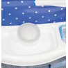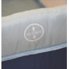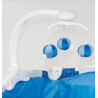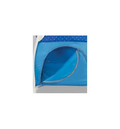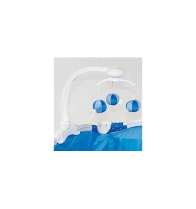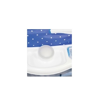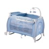 Идеалният кът за излежаване, изучаване на околния свят и игра за вашето бебе. Моделът отговоря на всички условия за практичност и комфорт, които бихте могли да си пожелаете. Креватчето разполага с две отделни нива - за спане и за игра, както и с матрак и подложка за повиване. Вашето улеснение за достъп до бебето и смяна на спалното бельо е гарантирано от страничния отвор с цип, а всички аксесоари на детето, нужни за ритуала по приспиването му, може да съхранявате в големия външен джоб на креватчето. Грифът с играчки над погледа на детето с поне две полезни действия - спомага едновременно концентрацията на детето и вашето спокойствие. При нужда от допълнителни играчки за атракция може да използвате специалната поставка за предмети в долния край на креватчето. Приятната следобедна дрямка на мъника пък е гарантирана от люлеещия механизъм, благодарение на който може да приспите и най-енергичното дете. Моделът разполага и с колелца за лесно и неусетно придвижване на дори вече заспалото дете.