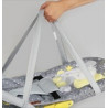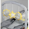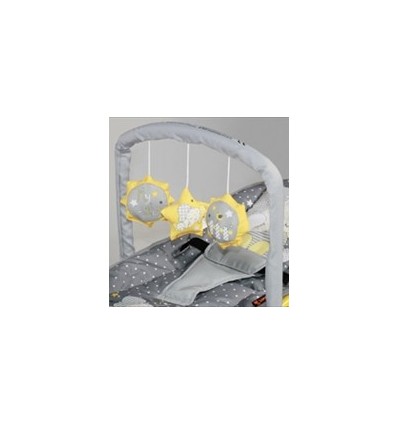 Компактен, лек и лесно преносим, моделът подобрява настроението само с визията си - предлаганата цветова гама е наистина богата, а тематичните щампи позволяват личен стил и на най-малките. Шезлонгът разполага с опция за люлеене, но и за заключване на успокояващото движение, за да се гарантира максималната безопасност на детето. Облегалката се регулира, за да е достатъчно удобна и за игра, и за почивка. Забавлението на детето е гарантирано от специалния гриф с играчки, а за ваше удобство шезлонгът разполага с дръжки за лесно пренасяне.