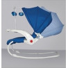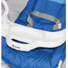 Идеално решение и за най-слънчевите летни дни, шезлонгът разполага със сгъваем сенник и поставка за предмети. Настроението на детето е гарантирано от специалния гриф с играчки, осигуряващи постоянно занимание. При нужда от почивка и дрямка, облегалката може да промени позицията си, а люлеещият се механизъм допълнително примамва в страната на сънищата. Шезлонгът е компактен и лесно преносим, а безопасността на детето е гарантирана от възможността за заключване на люлеенето.