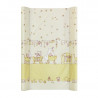 Подложката е с твърда основа, което предполага сигурност и безопасност за бебето. Може да се използва върху легла и скринове, което я прави практична и удобна за родителите. PVC покритието осигурява бързо и лесно почистване. Предлага се в нежна цветова гама с привличащи вниманието щампи.