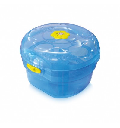 Парният стерилизатор стерилизира , използвайки  мощността  на микровълновата  фурна. Той има   две нива  и капацитет 6 шишета. Специалните отвори дават възможност за  лесно фиксиране на   шишетата. Компактен дизайн, удобен за  пътуване.